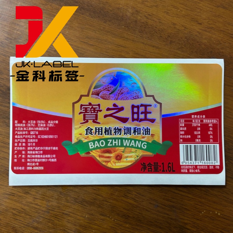 The retained liner in the middle helps prevent the label from becoming too soft or collapsing, which is especially important for edible oil indicator labels. It ensures that the label maintains a flat and firm surface, allowing clear visibility of oil levels or markings without deformation.