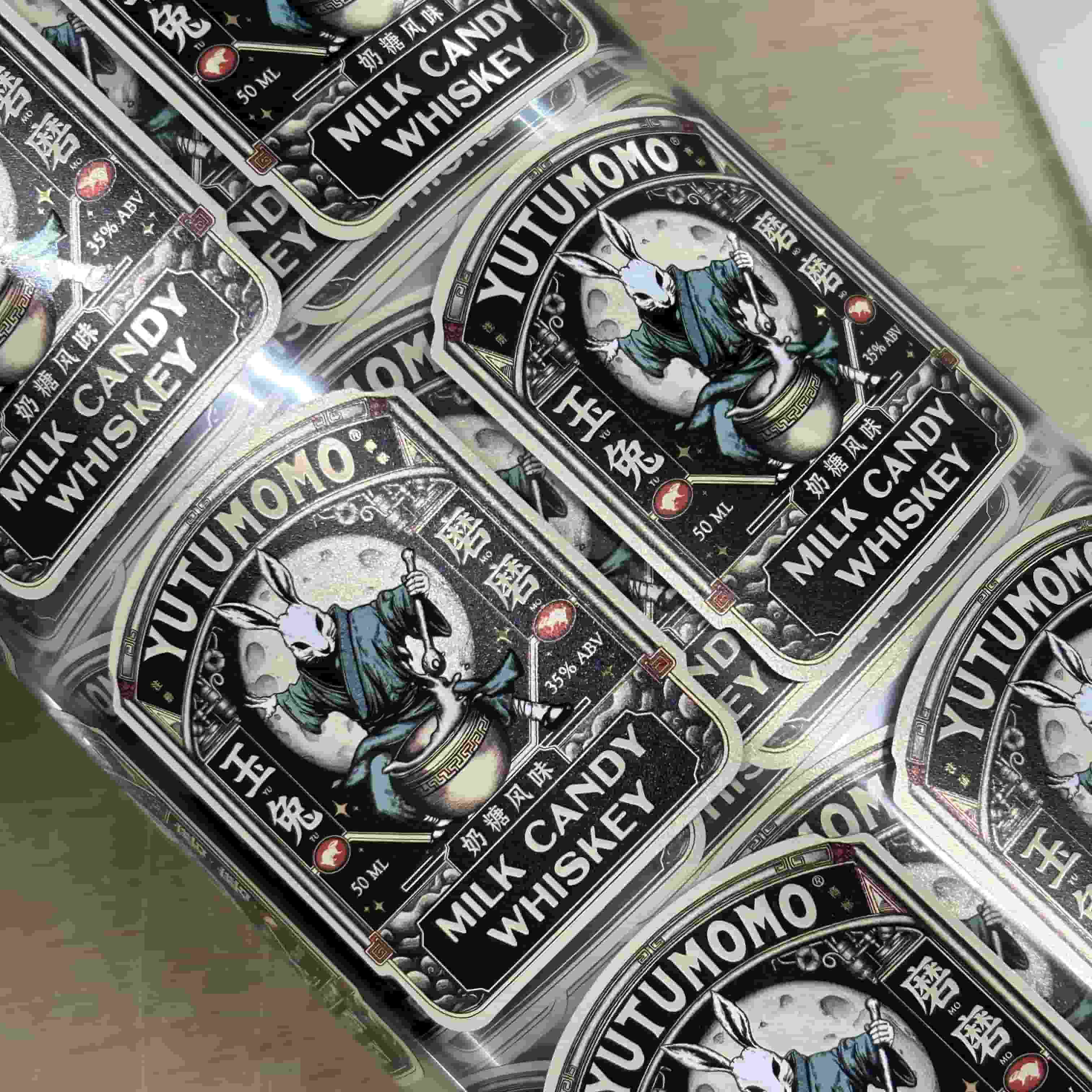 Kunstverket integrerer detaljerte illustrasjoner, teksturerte metalliske aksenter og en myk matt overflate som reduserer gjenskinn samtidig som den opprettholder en luksuriøs estetikk. Dette gjør etiketten egnet for whiskyflasker, drikkevarer i begrenset opplag, konfektmerker og kreativ gaveemballasje.